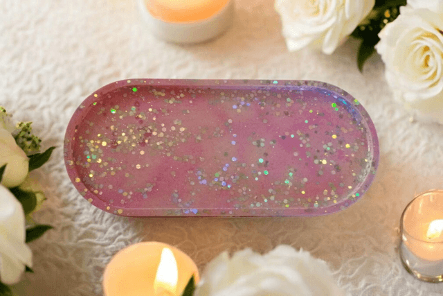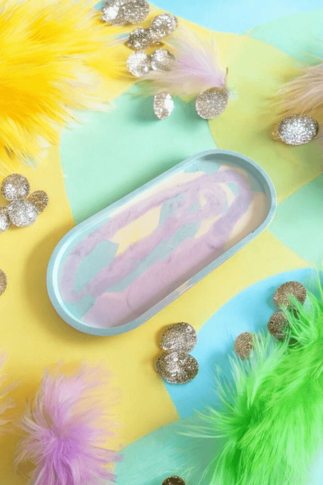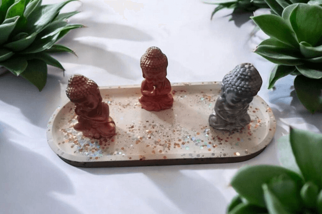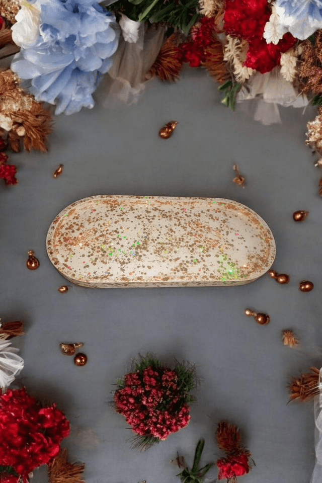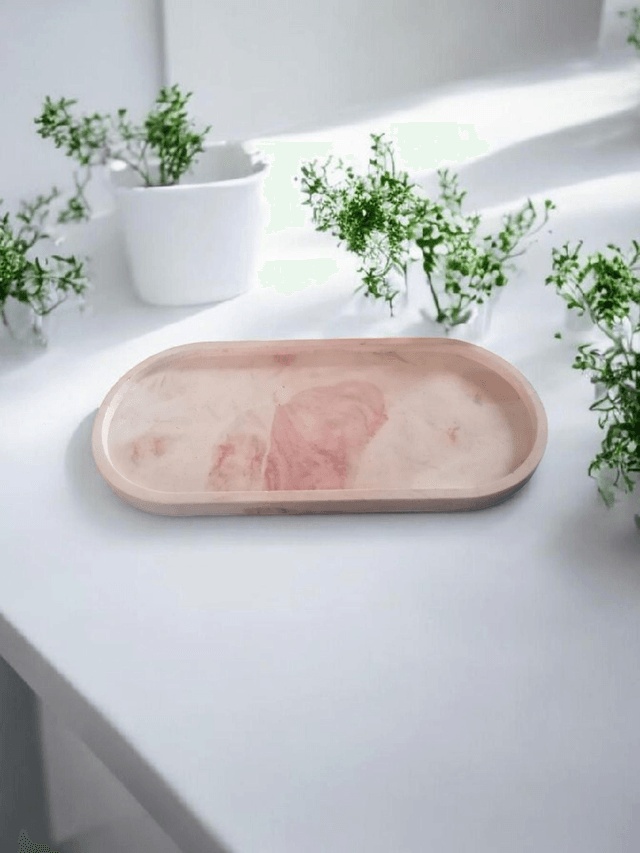 Grand plateau décoratif artisanal en plâtre de Paris, unique et personnalisable