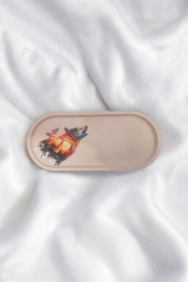 Grand plateau décoratif avec stickers loup qui chante