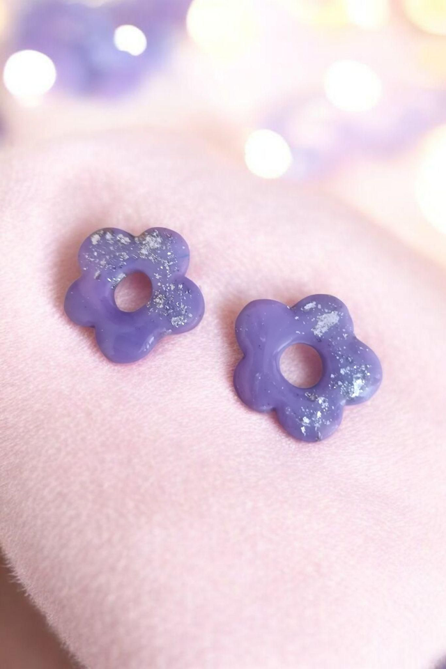 Ajoutez une touche d’originalité et d’éclat à vos tenues avec ces pampilles artisanales en forme de petite fleur. Réalisées à la main en pâte polymère, elles sont sublimées par de délicats éclats de feuilles argentées qui reflètent la lumière avec élégance. Leur finition brillante met en valeur leur design pétillant et moderne.