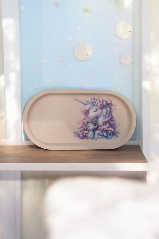 Petit Plateau Artisanal en Plâtre de Paris – Stickers licorne