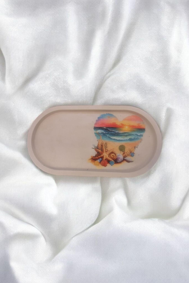Plateau Artisanal en Plâtre de Paris – Stickers plage et coquillages