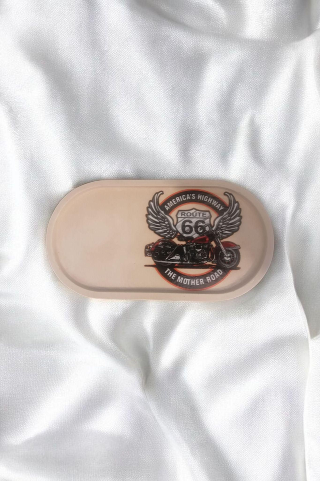 Petit Plateau Artisanal en Plâtre de Paris – Stickers route 66 avec moto