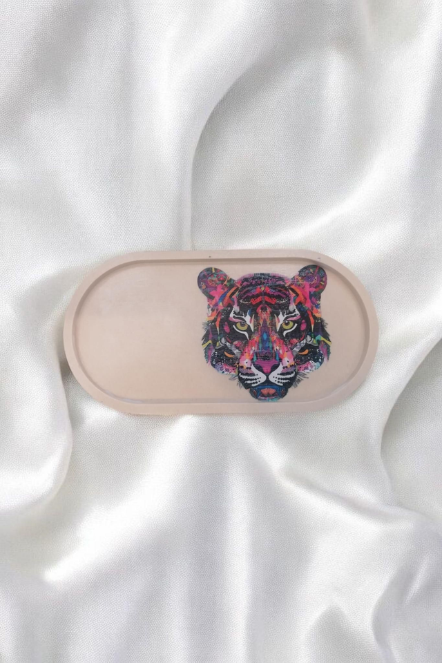 Petit Plateau Artisanal en Plâtre de Paris – Stickers tigre coloré