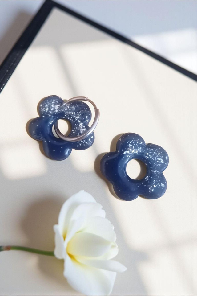 Ajoutez une touche d’originalité et d’éclat à vos tenues avec ces pampilles artisanales en forme de petite fleur. Réalisées à la main en pâte polymère, elles sont sublimées par de délicats éclats de feuilles argentées qui reflètent la lumière avec élégance. Leur finition brillante met en valeur leur design pétillant et moderne.