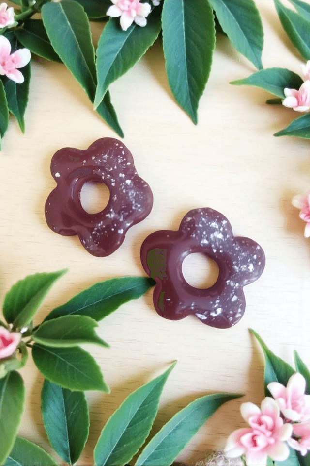 Ajoutez une touche d’originalité et d’éclat à vos tenues avec ces pampilles artisanales en forme de petite fleur. Réalisées à la main en pâte polymère, elles sont sublimées par de délicats éclats de feuilles argentées qui reflètent la lumière avec élégance. Leur finition brillante met en valeur leur design pétillant et moderne.
