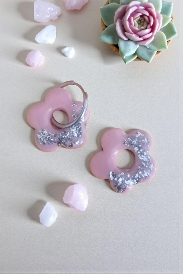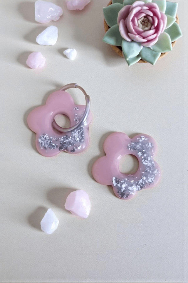 Ajoutez une touche d’originalité et d’éclat à vos tenues avec ces pampilles artisanales en forme de petite fleur. Réalisées à la main en pâte polymère, elles sont sublimées par de délicats éclats de feuilles argentées qui reflètent la lumière avec élégance. Leur finition brillante met en valeur leur design pétillant et moderne.