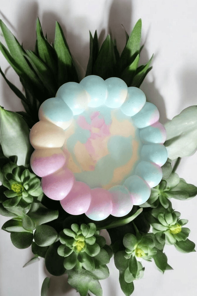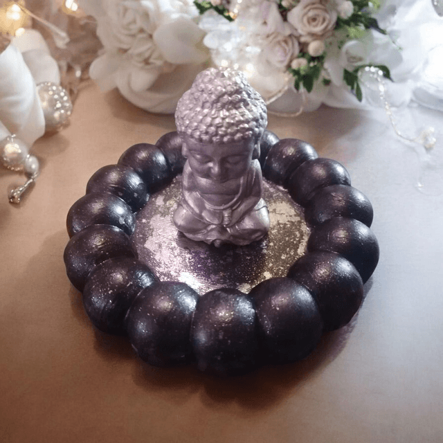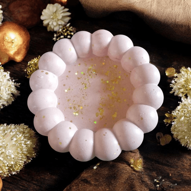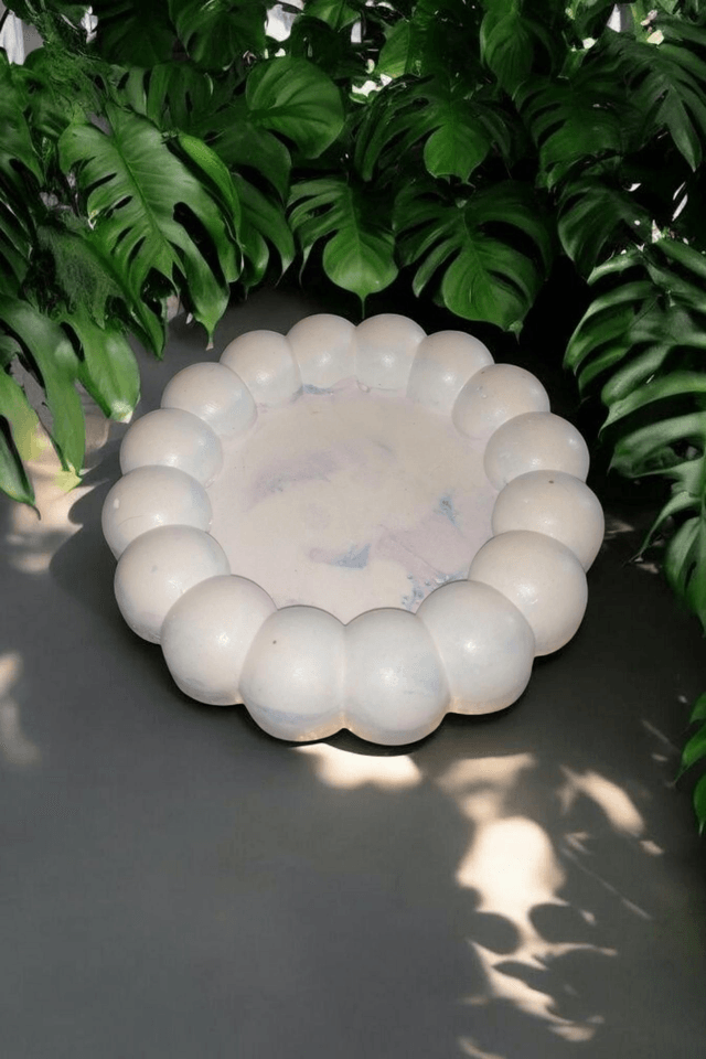 Petit plateau décoratif rond artisanal en plâtre de Paris, unique et personnalisable
